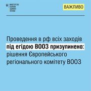 призупинити проведення в рф всіх заходів (конференцій, семінарів, зустрічей) під егідою ВООЗ