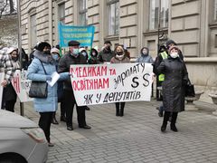 Під час акції протесту відбувся флешмоб: усі учасники демонстративно вивернули кишені, аби показати, що через дії влади у них порожньо. Після цього озвучені вимоги ми передали у зверненні першому заступнику голови ЛОДА Андрію Годику. Він пообіцяв передати їх до Верховної Ради та Кабінету Міністрів.